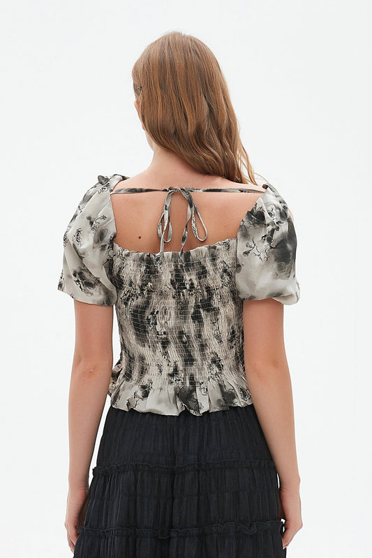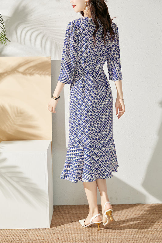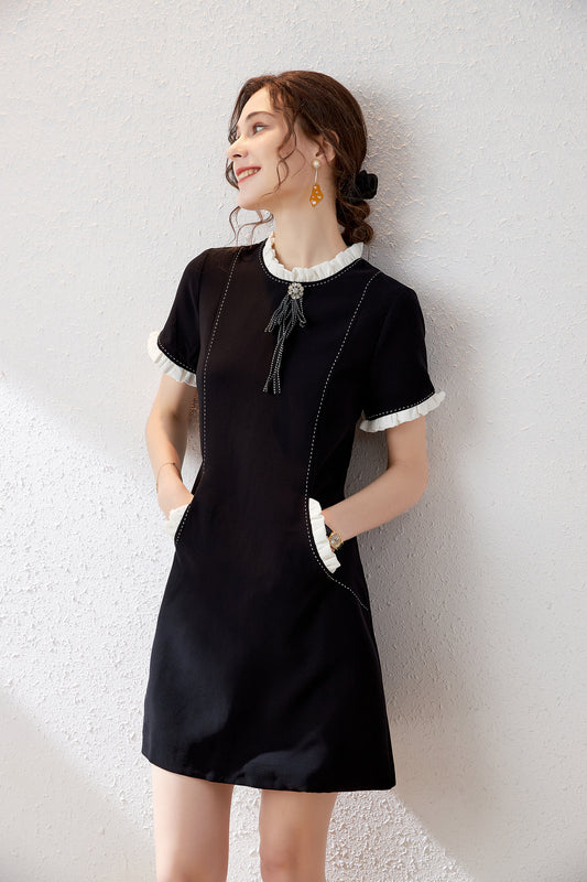 Albeta crystal beaded front ribbon dress with mesh sleeve