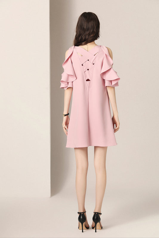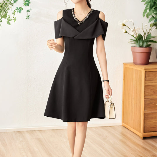Faustine crystal collar hemp knee dress with cut out shoulder
