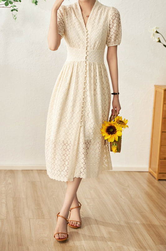 Elin embroidery mesh midi dress