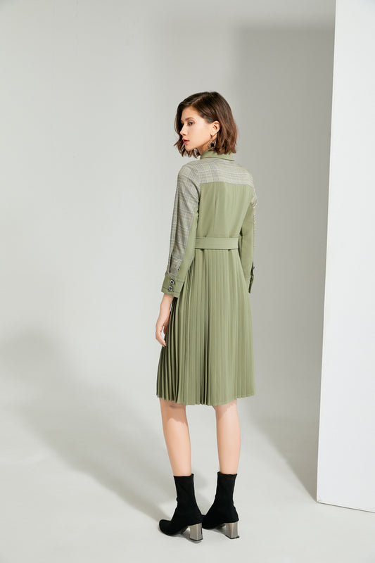 Elvira half pleated dress with waist belt