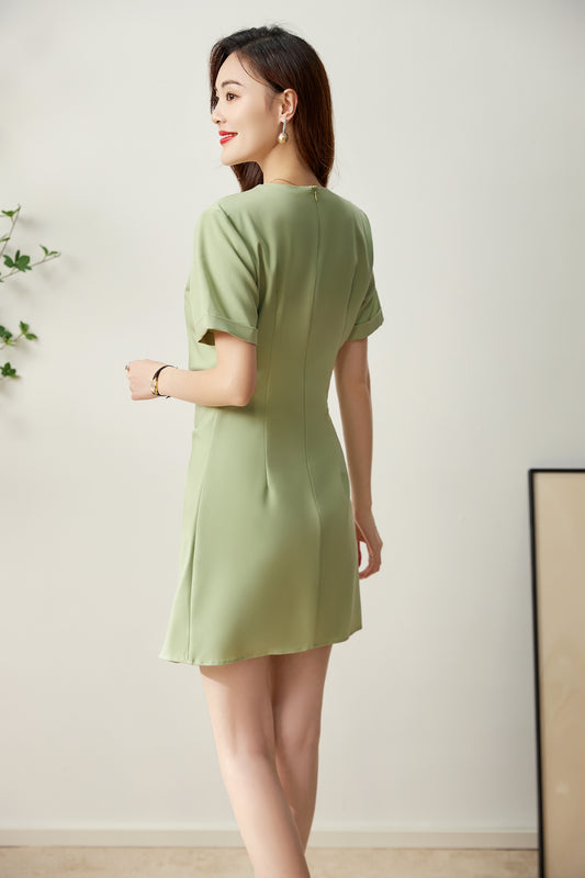 Eloise V neck fine twill asymmetrical dress