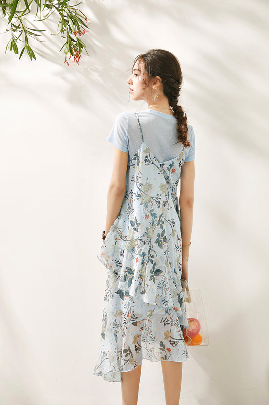 Elodie 2 piece set spaghetti strap tiered ruffle flare dress with stretchable top