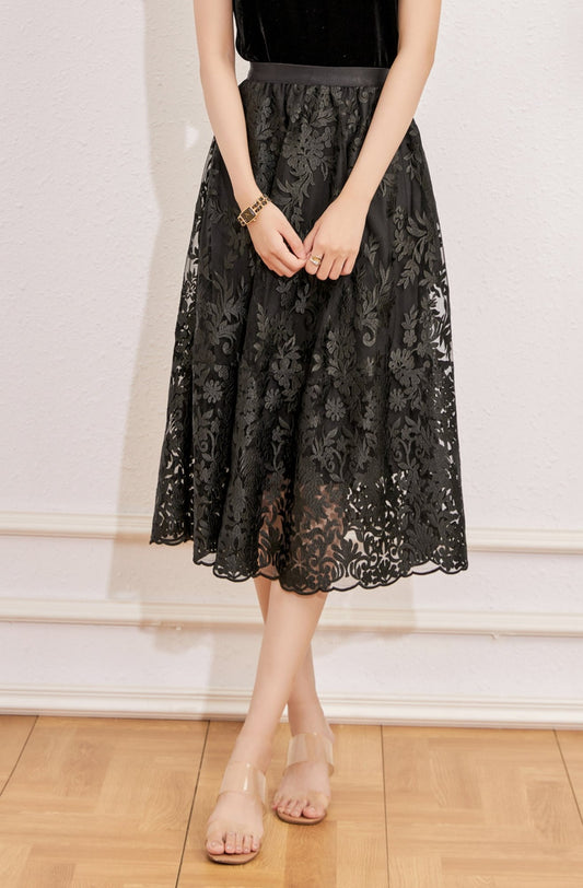 Yara A line lace embroidery skirt with elastic waist