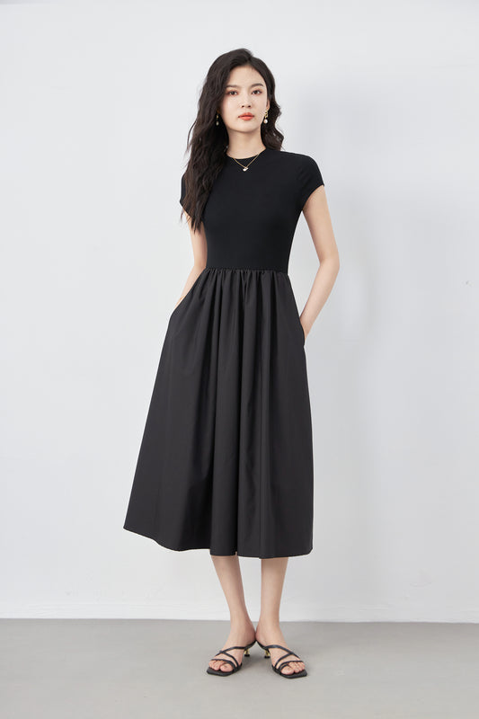 Jersey round neck A-Line midi dress
