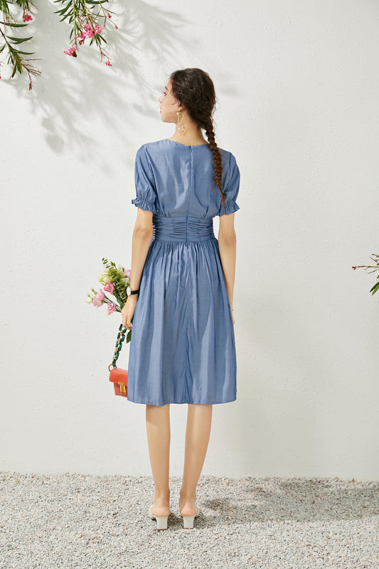 Fenna button down ruffle sleeve midi dress with gathered detail