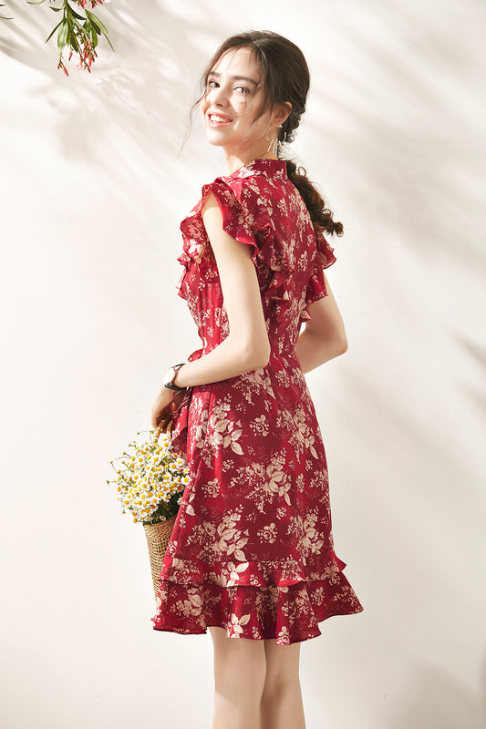 Frida ruffle sleeve front wrap mini dress