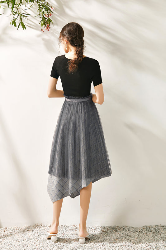 Gala pseudo 2 piece pleated asymmetrical dress with slitted top