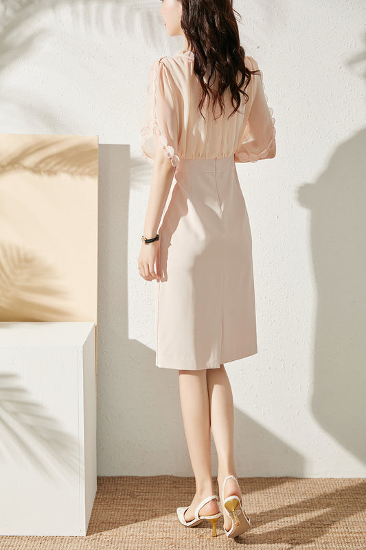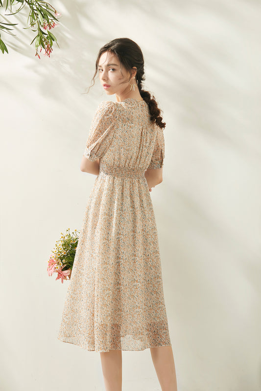 Blaise V neck Puff sleeve Ruffle Tulip MIDI dress